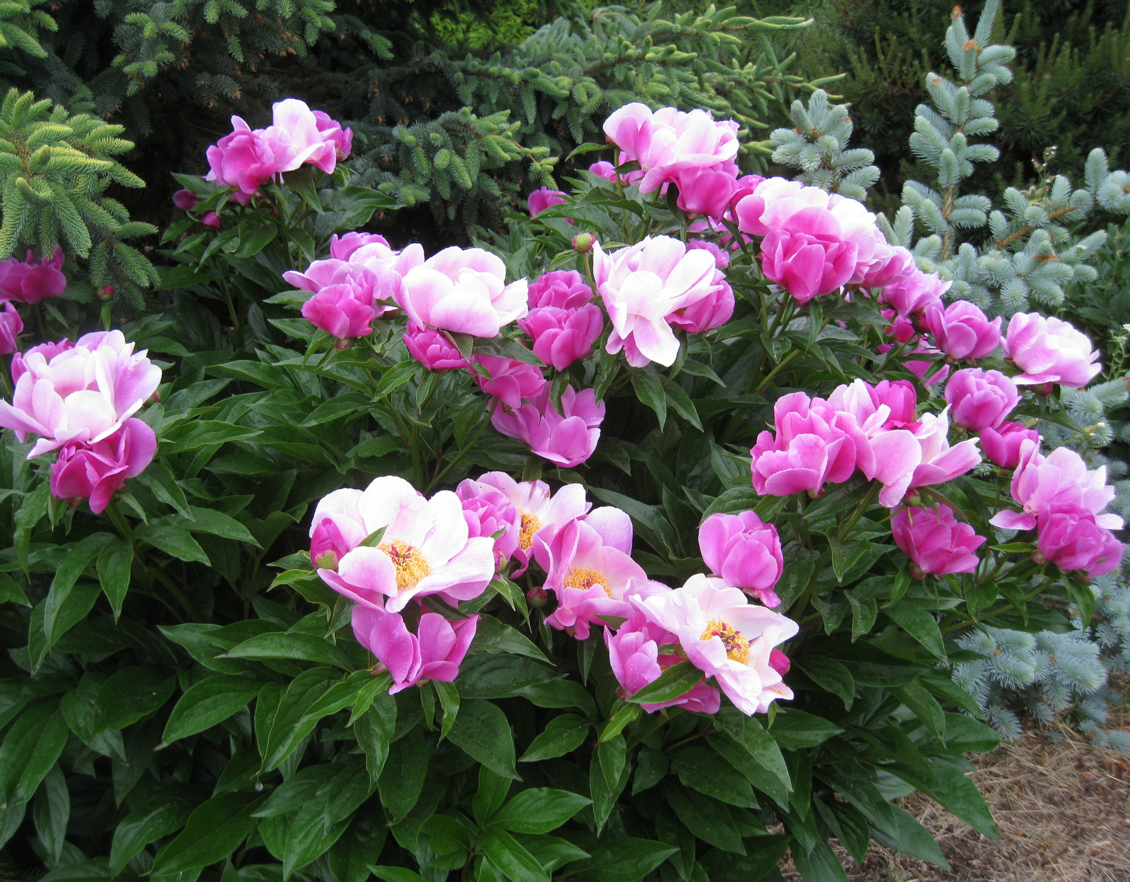 there in May and the Peonies had outgrown the conifers and stole the show, it