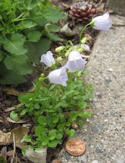 This is one of the standard little campanulas, and I have to say, it is pretty nice. Little dense plants that cover themselves with flowers round about mid-June, then keep on reblooming the rest of the summer. Not only that, but like all the rest of the genus, these have been absolutely tough and undemanding for me - they even put up with being transplanted in the middle of a 90 degree heat wave without wilting!